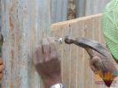 Start mit dem temporären Haus aus Holz und Blech