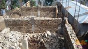 Die Fundamente fuer die Toiletten sind im Vordergrund zu sehen