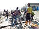In einer Kette werden Schalen mit Beton weitergereicht (2015)
