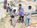 Der Kies im Sack wird auf dem Ruecken geschleppt, oft durch Frauen und Maedchen (2015)